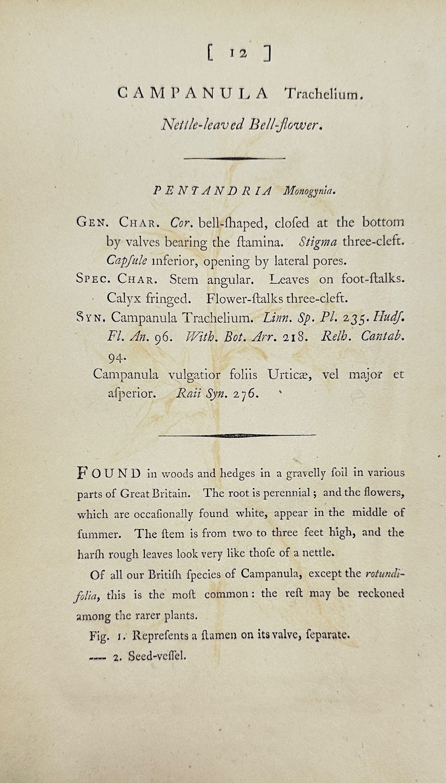 Antique Print - Sowerby - Campanula Trachelium - Nettle-leaved Bellflower - F1
