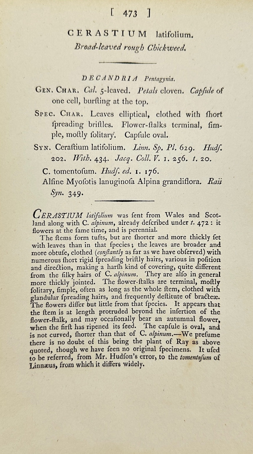 Antique Print - Sowerby - Cerastium Latifolium - Broad-leaved Chickweed - F1