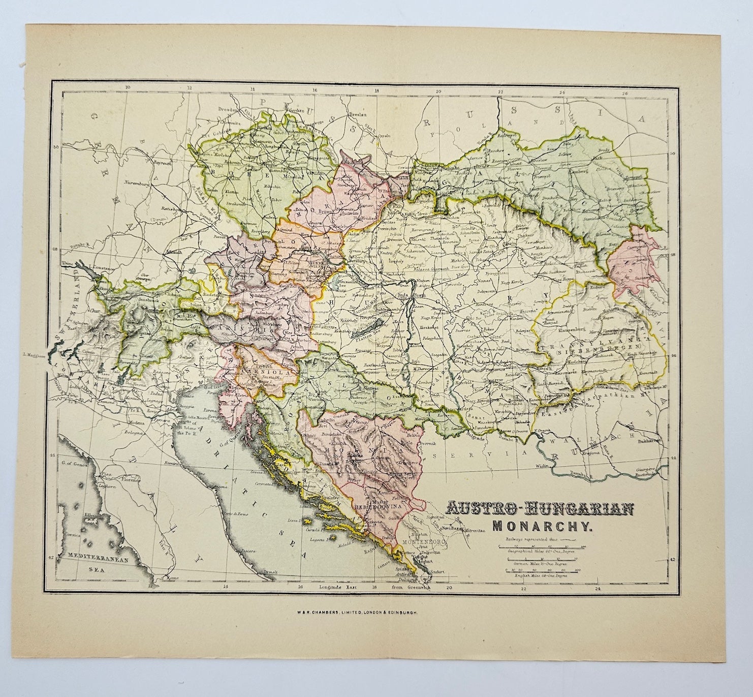 Original Antique Map - John Bartholomew - Austro-Hungarian Monarchy - G3
