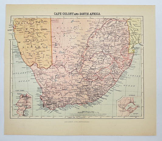 Original Antique Map - George Philip - South Africa - George Philip & Son - G3