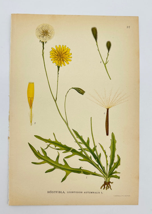 Antique Print - Carl Lindman - Autumn Hawkbit - Leontodon Autumnal - F4