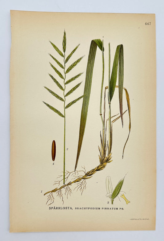 Antique Print - Carl Lindman - Awned Brome - Brachypodium Pinnatum - F4