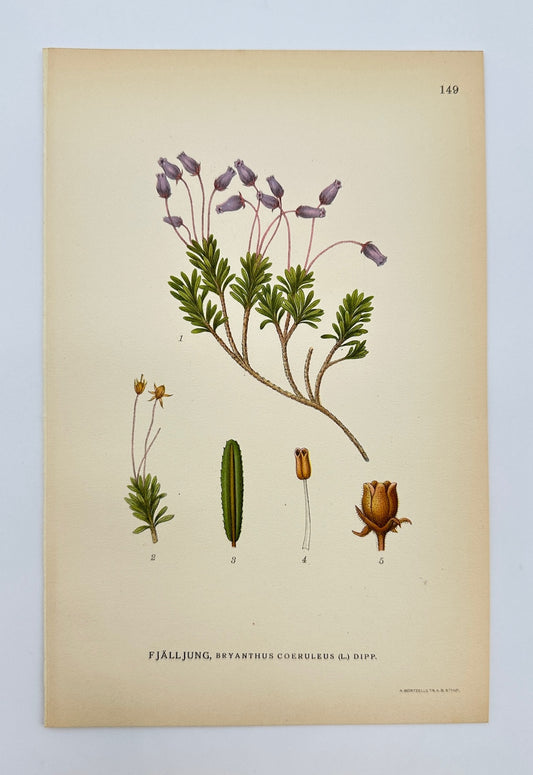 Antique Print - Carl Lindman - Blue Mountainheath - Bryanthus Caeruleus - F4