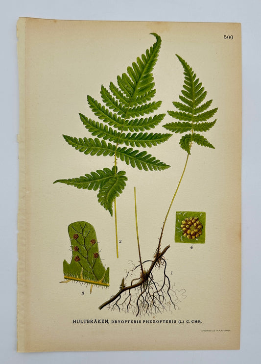 Antique Print - Carl Lindman - Beech Fern - Dryopteris Phegopteris - F4