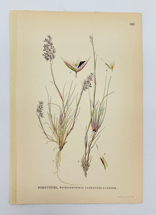 Antique Print - Carl Lindman - Hairy Canary-Grass - Weingærtneria Canescens - F4
