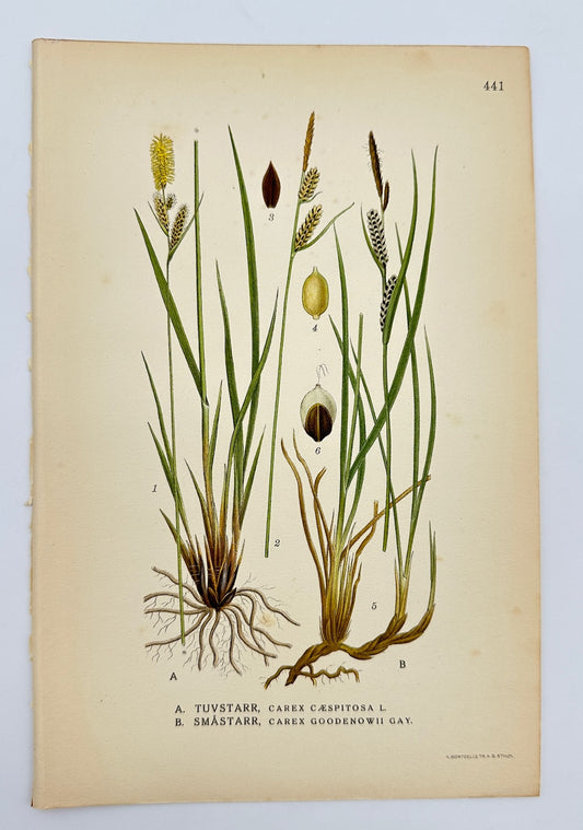 Antique Print - Carl Lindman - Goodenough's Sedge and Tufted Sedge - F4