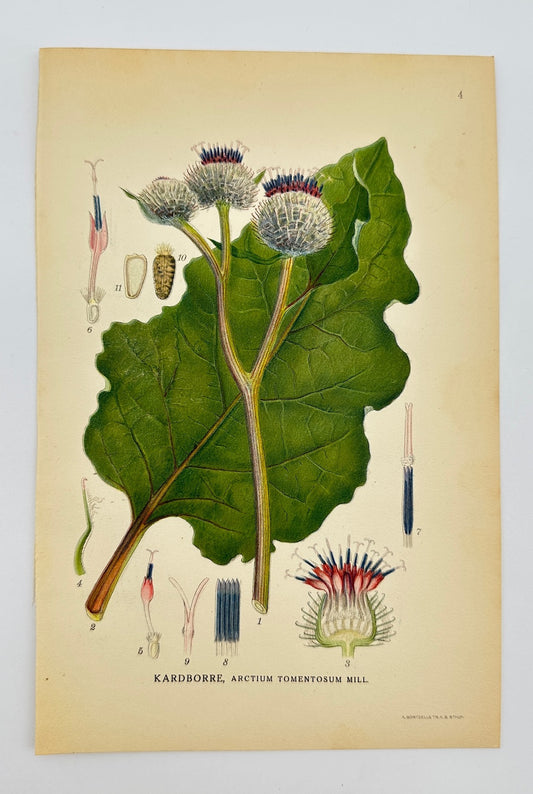 Antique Print - Carl Lindman - Woolly Burdock - Arctium Tomentosum - F4