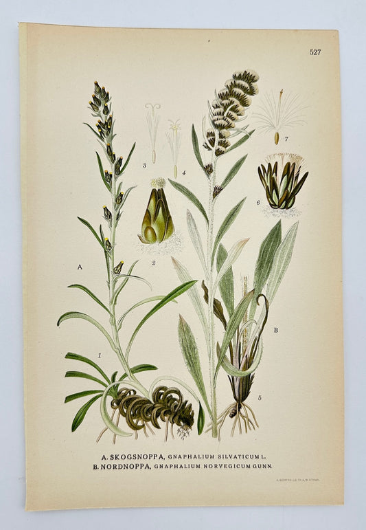 Antique Print - Carl Lindman - Woodland Cudweed and Norwegian Cudweed - F4