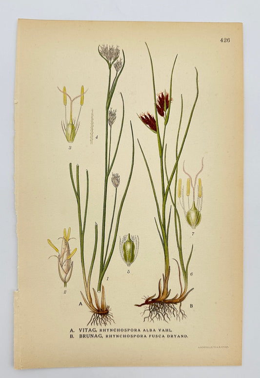 Antique Print - Carl Lindman - White Beak-sedge and Brown Beak-sedge - F4