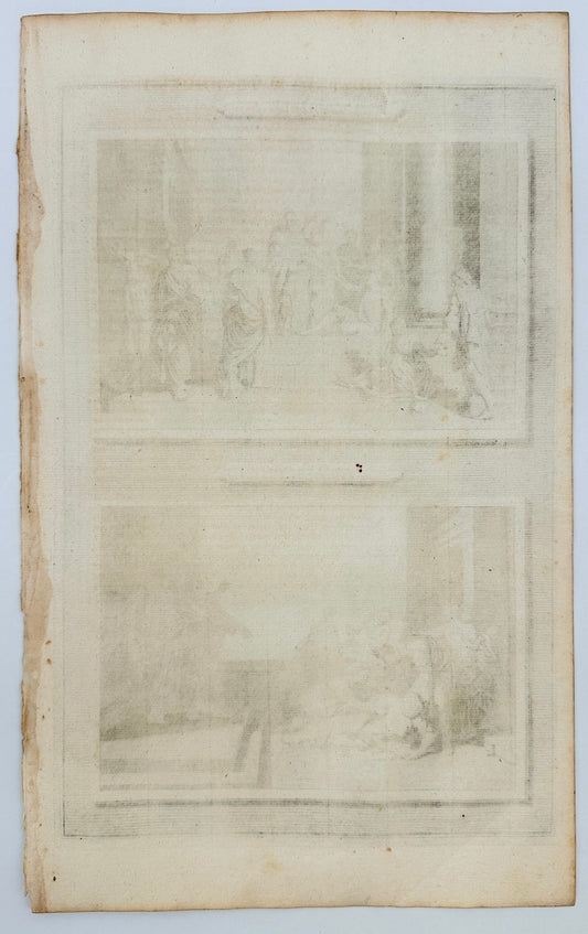 Antique Biblical Print - Healing at the Temple Gate & Death of Spouses F5