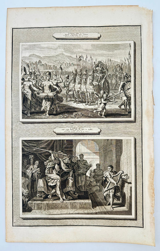 Antique Engraving - Pierre Mortier - Davids Zeegepraal Over Goliath - F5