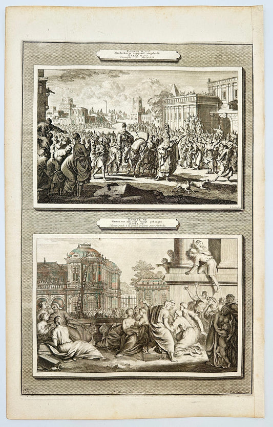 Antique Engraving - Pierre Mortier - Mordecai Led in Triumph - Amsterdam - F5