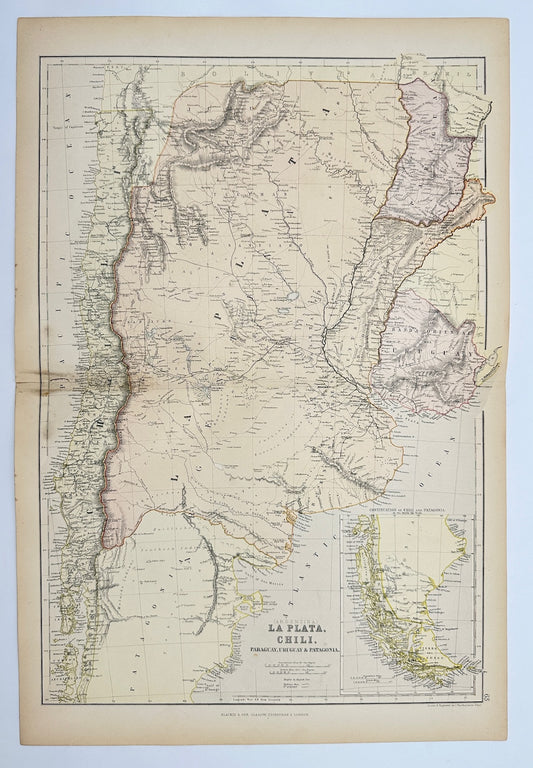 Antique Map - Blackie - La Plata Chili, Paraguay, Uruguay and Patagonia - G3