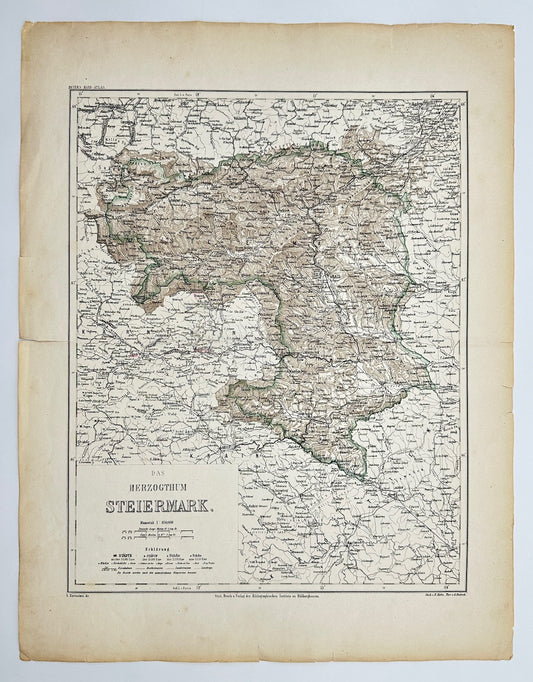 Antique Map - John Ravenstein - Duchy of Styria - Meyers Hand-Atlas - G3