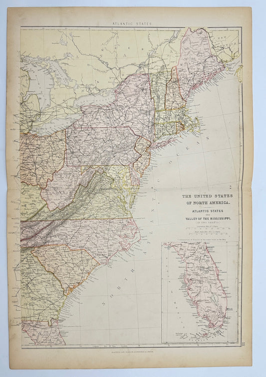 Original Antique Map - John Bartholomew - United States - North America - G3