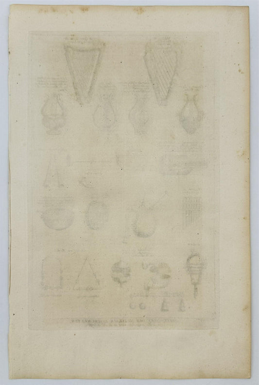 Antique Print - Antoine Calmet - Musical Instruments Mentioned in Bible - F5