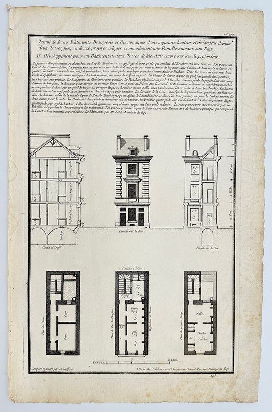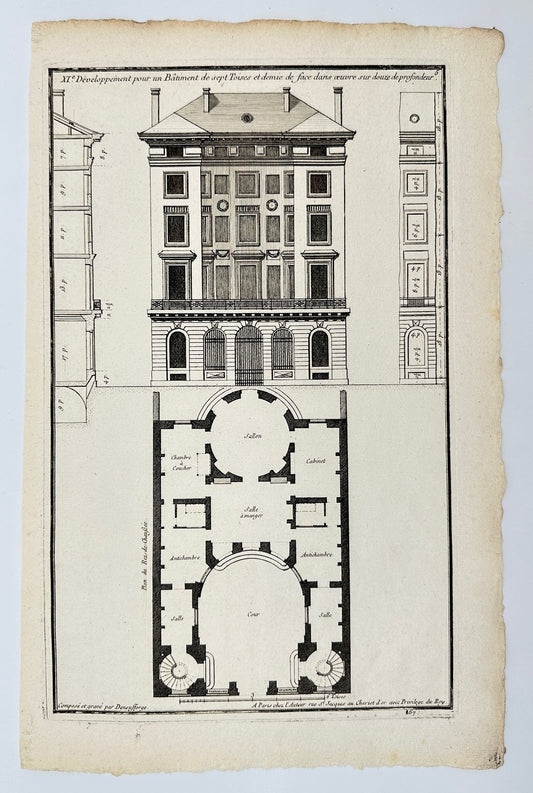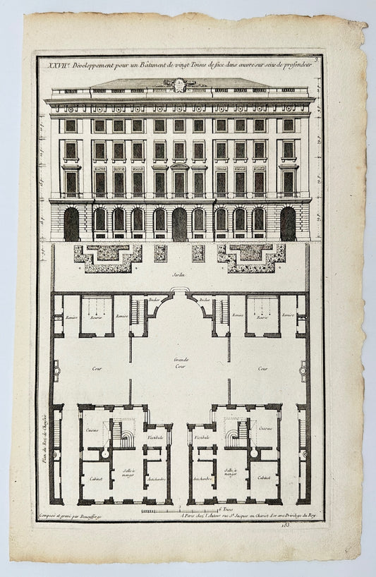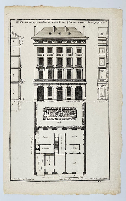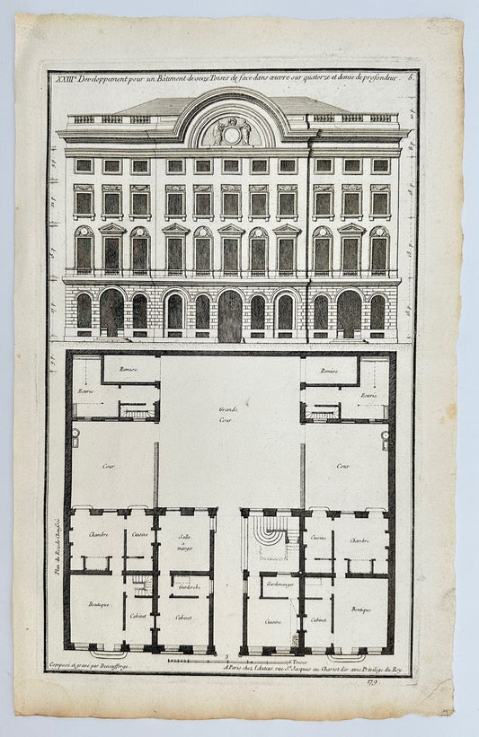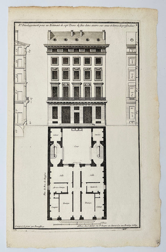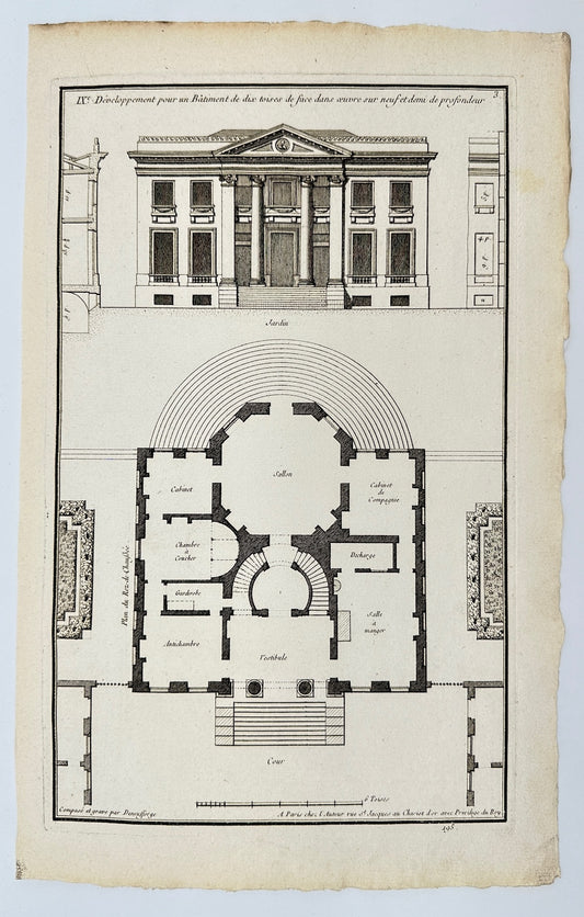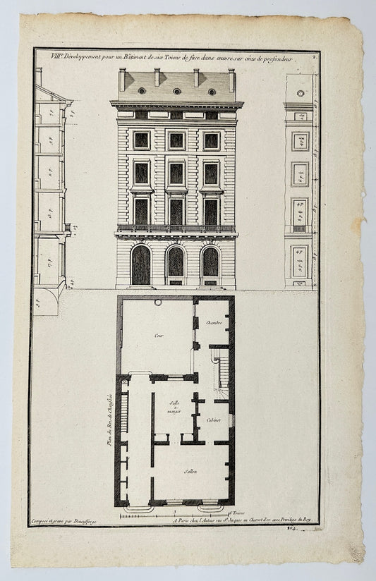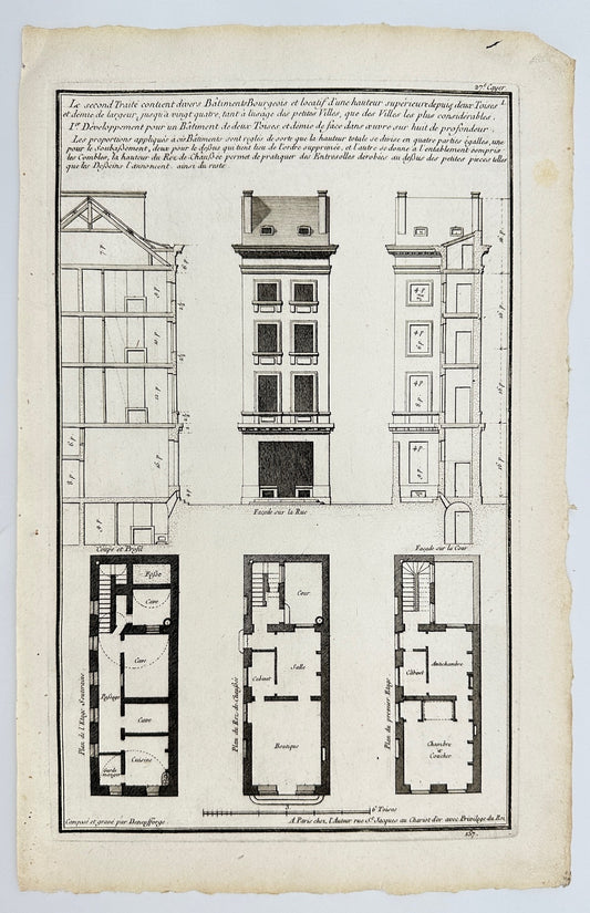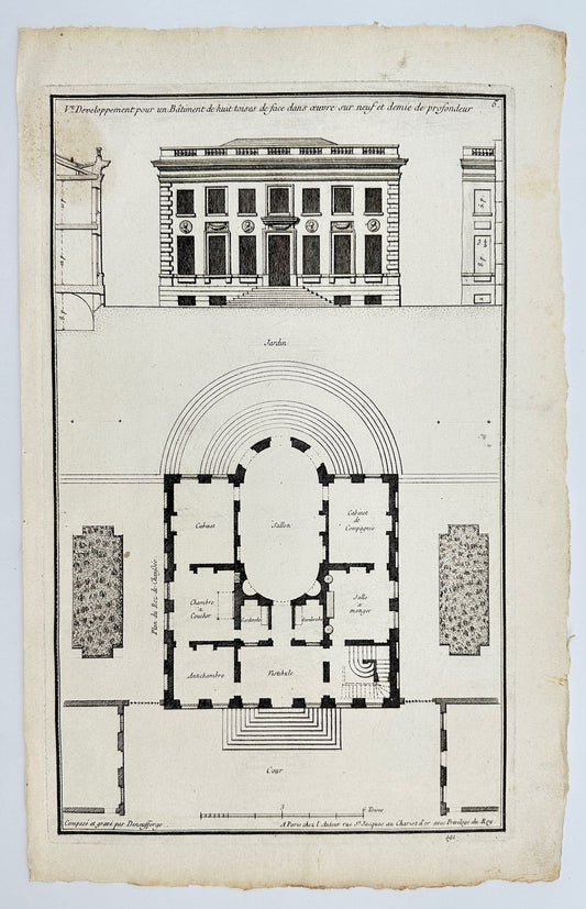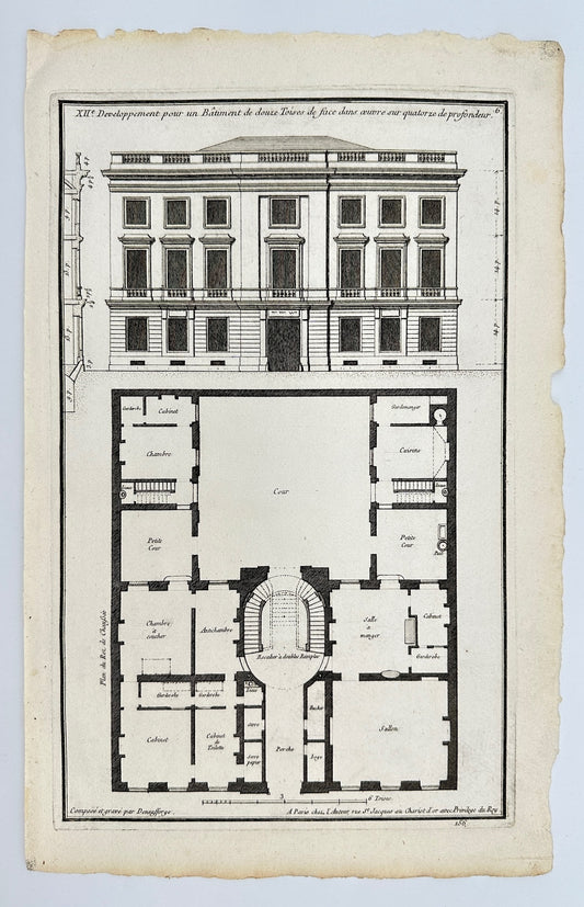 Antique Architectural Print - Development for a Building of seven Toises - F4