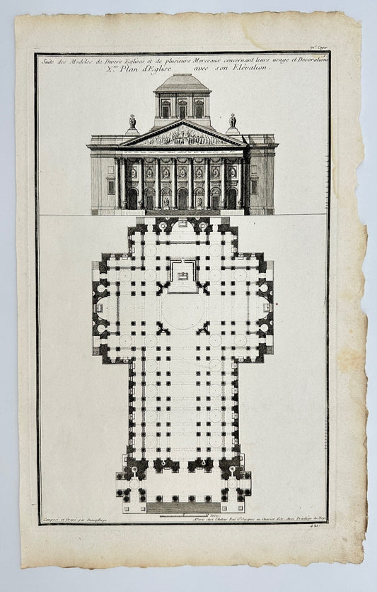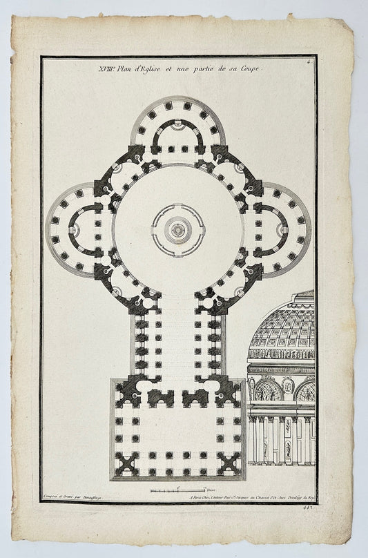 Antique Architectural Print - Church Plan and a Part of its Section - F4