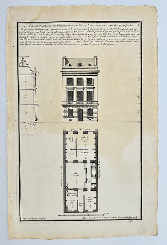 Antique Architectural Print - Development for a Building of four Tousee - F4