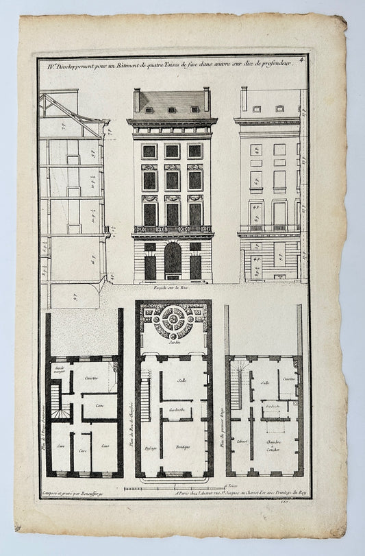 Antique Architectural Print - Neufforge - Development of a Building - F4