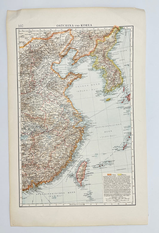 Antique Map - The Times Atlas - Ostchina and Korea - East China Sea - G3