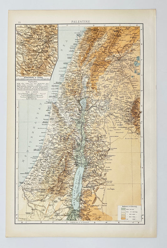 Original Antique Map - Richard Andree - Palestine - Ramallah - Jerusalem - G3