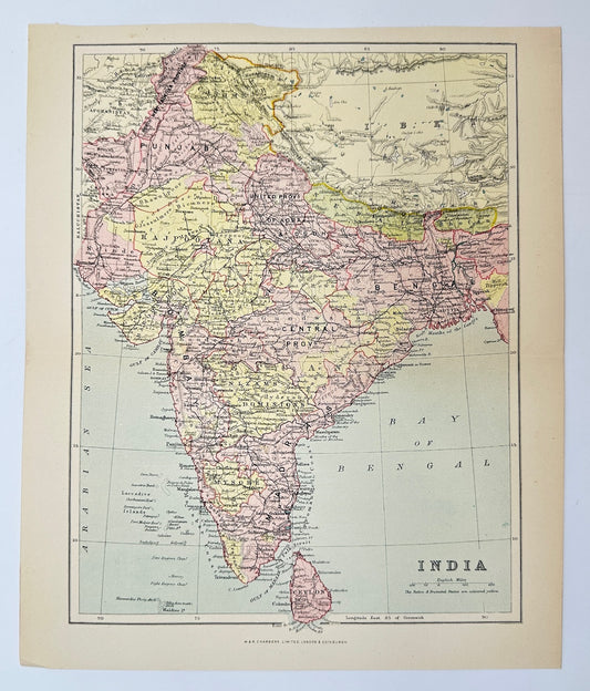 Original Antique Map - John Bartholomew - Asia - Indian Ocean - China - G3