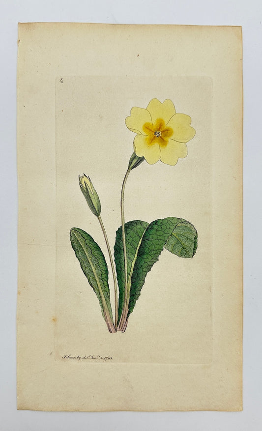 Antique Print - James Sowerby - Primula Vulgaris - Common Primrose - F1