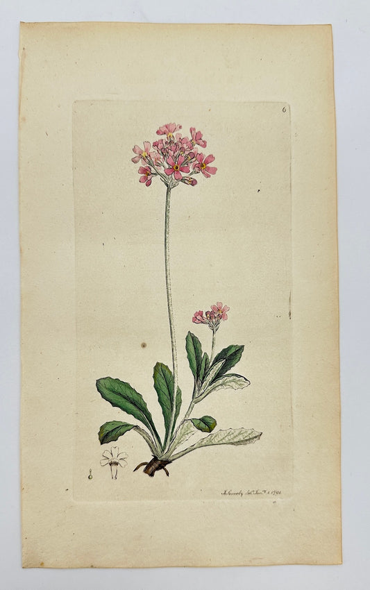 Antique Print - James Sowerby - Primula Farinosa - Bird's-eye Primrose - F1