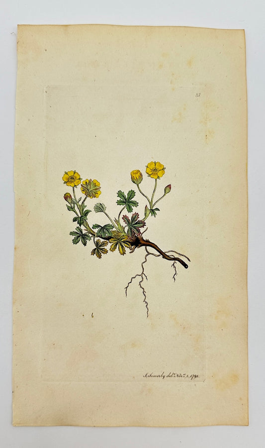 Antique Print - James Sowerby - Potentilla Spring - Spring Cinquefoil - F1