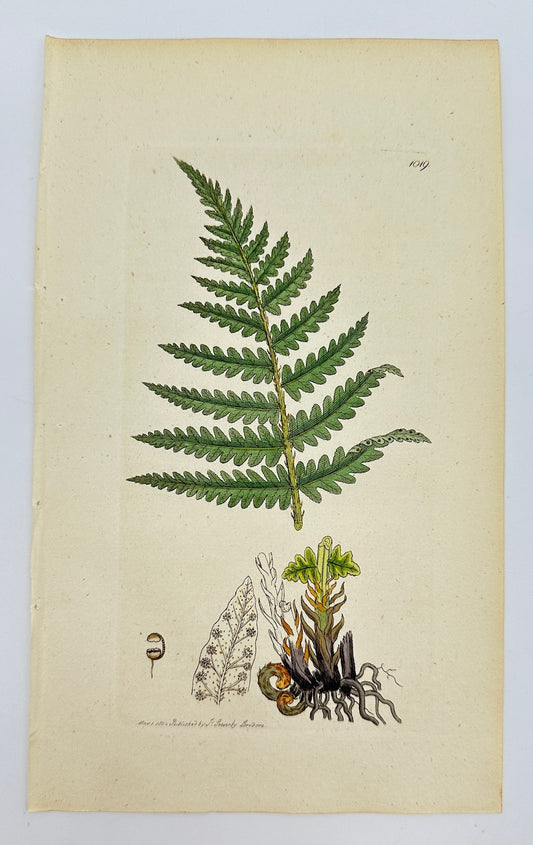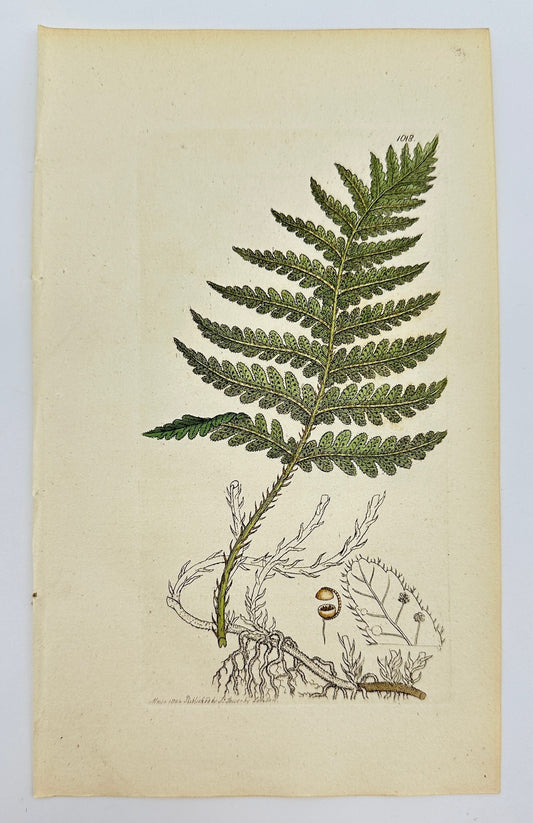 Antique Print - James Sowerby - Polypodium Oreopteris - Mountain Polypody - F1