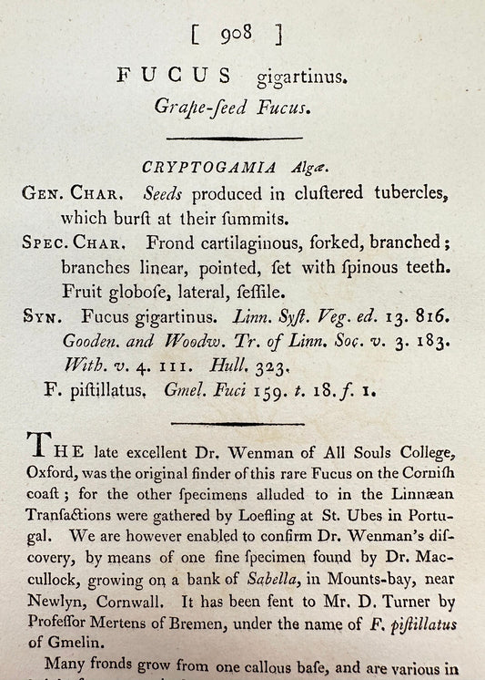 Antique Print - James Sowerby - Fucus Vesiculosus - Thick-leaved Fucus - F1