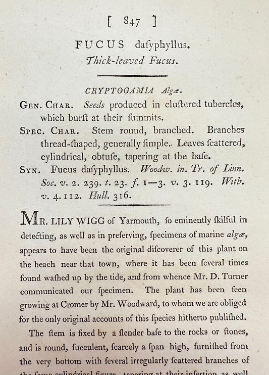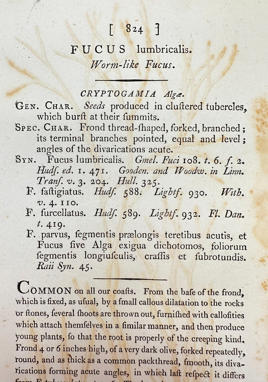 Antique Print - James Sowerby - Fucus Lumbricalis - Worm-like Fucus - F1