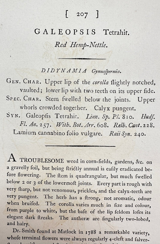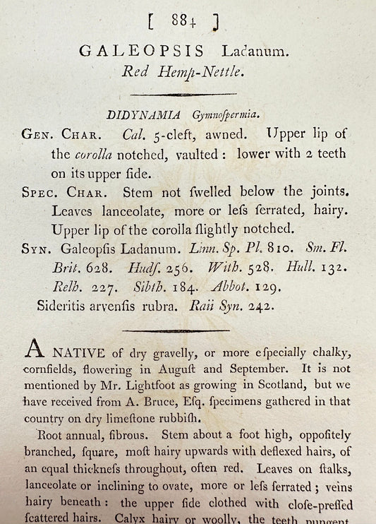 Antique Print - James Sowerby - Galeopsis Tetrahit - Red Hemp-Nettle - F1