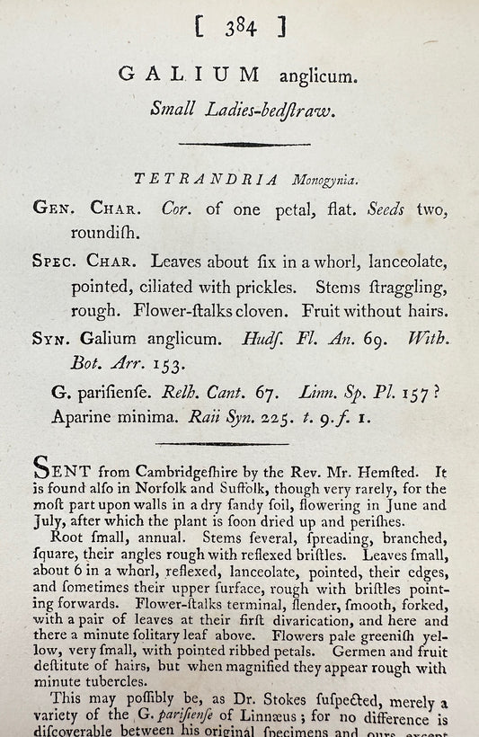 Antique Print - James Sowerby - Galium Anglicum - Small Ladies-bedſtraw - F1