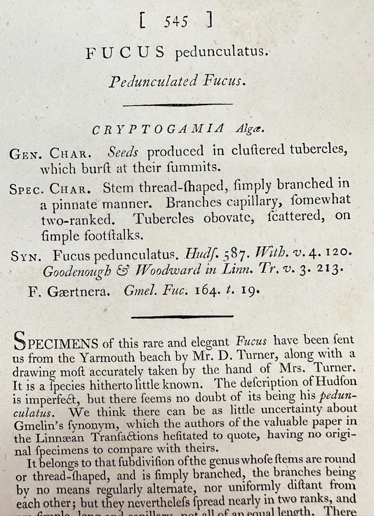 Antique Print - James Sowerby - Fucus Pedunculatus - Pedunculated Fucus - F1