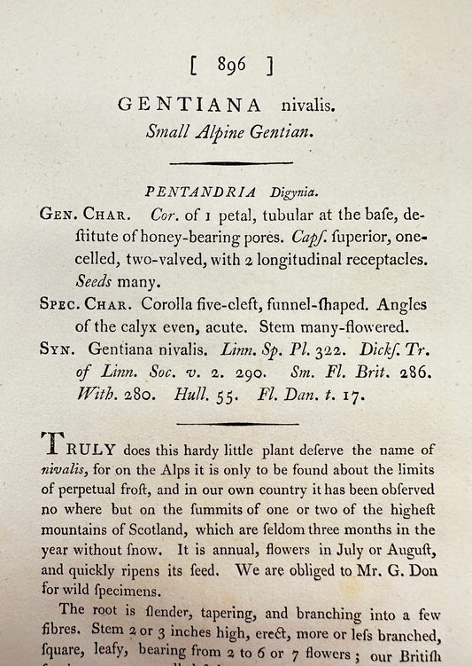 Antique Print - James Sowerby - Gentiana Nivalis - Small Alpine Gentian - F1