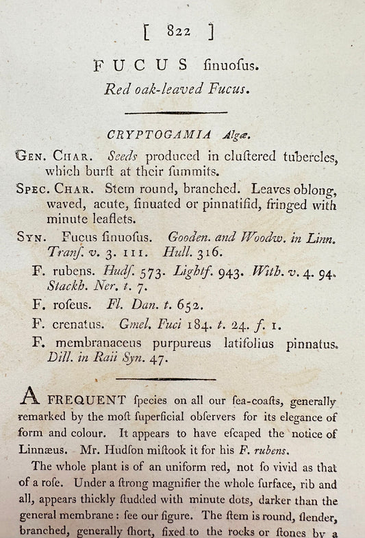 Antique Print - James Sowerby - Fucus Vesiculosus - Red Oak-leaved Fucus - F1