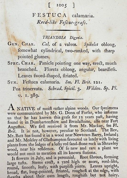 Antique Print - James Sowerby - Festuca Calamaria - Reed-like Fescue-grafs - F1