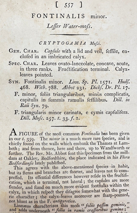 Antique Print - James Sowerby - Fontinalis Minor - Leffer Water-moss - F1