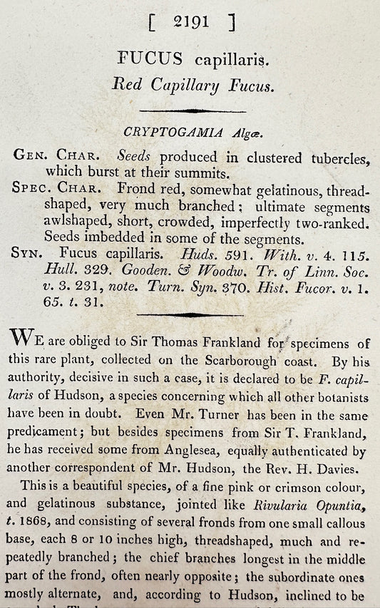 Antique Print - James Sowerby - Fucus Capillaris - Red Capillary Fucus - F1