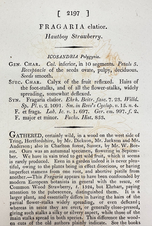 Antique Print - James Sowerby - Fragaria Elatior - Hautboy Strawberry - F1