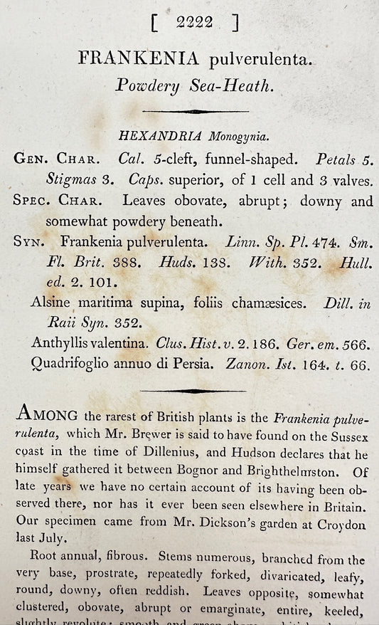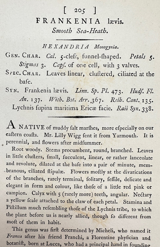 Antique Print - James Sowerby - Frankenia Lævis - Smooth Sea-Heath - F1