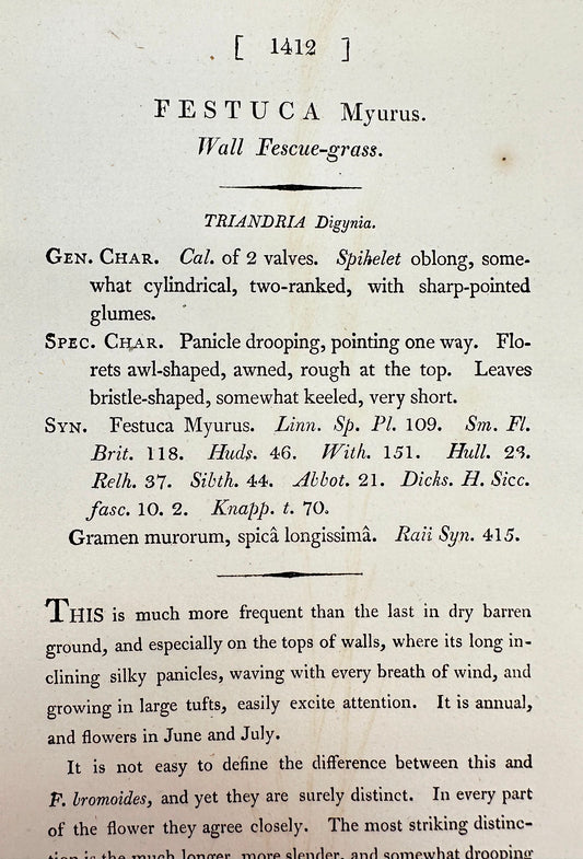 Antique Print - James Sowerby - Festuca Myurus - Wall Fescue-grass - F1
