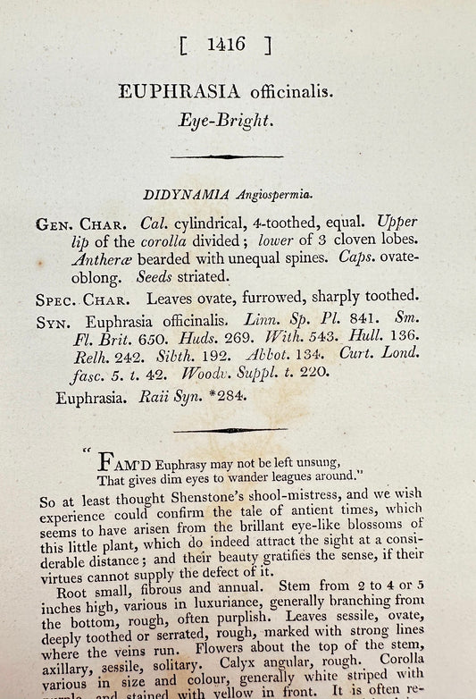 Antique Print - James Sowerby - Euphrasia Officinalis - Eye-Bright - F1