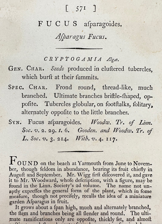 Antique Print - James Sowerby - Fucus Afparagoide - Asparagus Fucus - F1