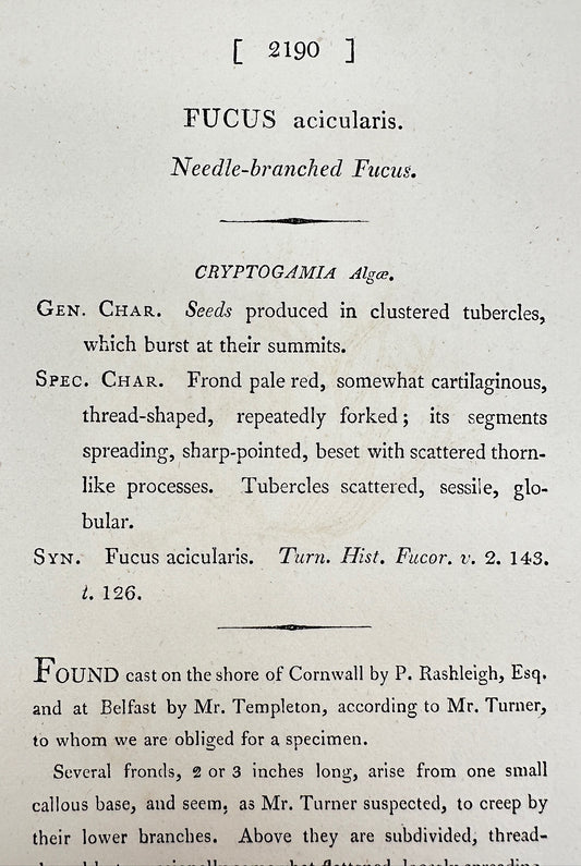 Antique Print - James Sowerby - Fucus Acicularis - Needle-branched Fucus - F1