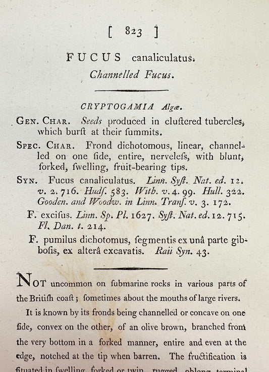 Antique Print - James Sowerby - Fucus Canaliculatus - Channelled Fucus - F1