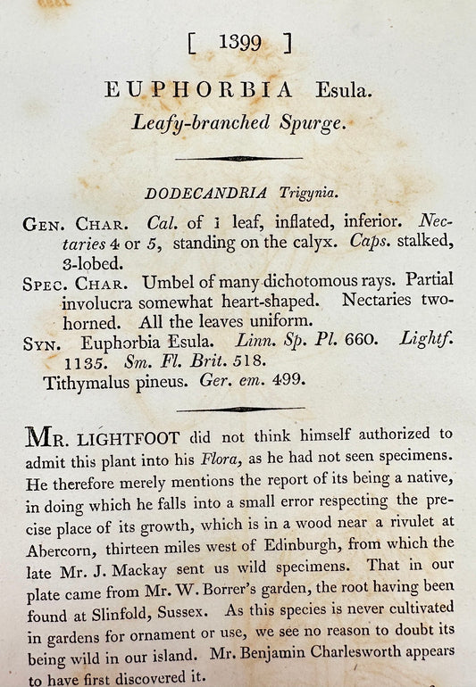 Antique Print - James Sowerby - Euphorbia Esula - Leafy-branched Spurge - F1