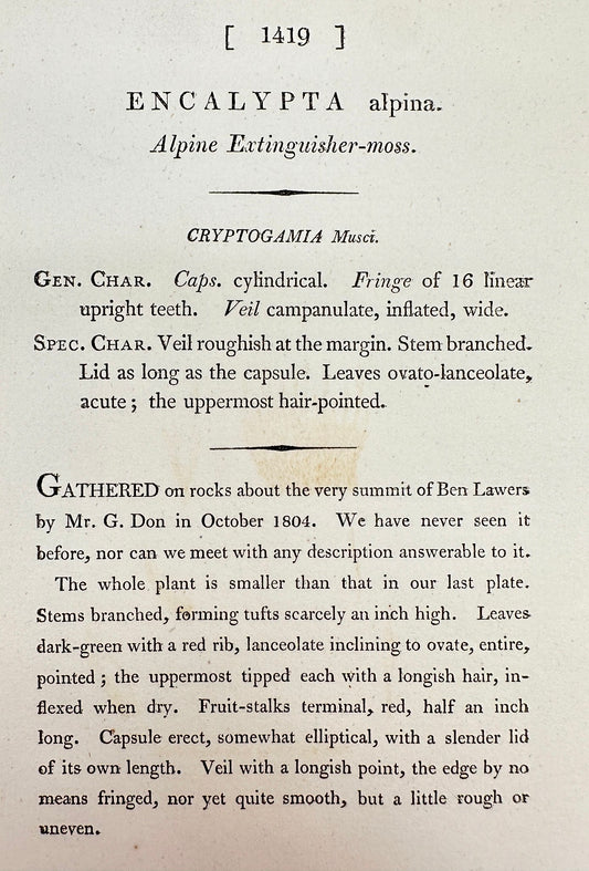 Antique Print - James Sowerby - Encalypta Alpina - Alpine Extinguisher-moss - F1